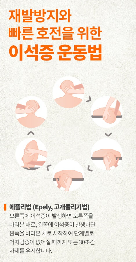 이석증을 미리 막는 특별한 방법은 없으나 이전에 이석증으로 인한 현기증을 경험한 적이 있으면 머리의 위치를 바꾸지 않도록 주의하십시오. 그리고 두부 외상 후에 이석증이 빈번히 발생하기 때문에 머리를 다치지 않도록 주의합니다. 단순 두통이나 현기증이 인체 이상으로 나타날 수 있기 때문에 주의하시기 바랍니다. 증상을 일으키는 반규관의 위치에 따라 이석치환술 방법이 달라지기 때문에 자가 낫게 하기보다는 경험이 수많은 이비인후과 의료진에게 치료를 받는편이 좋아요.
