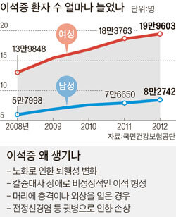이석증 원인은 아쉽게도 아직 확실하게 밝혀진 것은 없다고 합니다. 그러나, 추축으로는 시간이 지나 연령대가 오르게 되면 칼륨이 기관에서 빠져 나오게 되어 돌이 떨어뜨리는 일이 흔히 생긴다는 것입니다. 이런이유가 되는 것은 비타민D 및 칼슘 부족으로 생길 수 있답니다. 이석증의 이석이란 칼슘부스러기이므로 칼슘대사의 문제가 있을때 생기게 될 수 있다고 보고 있어요.