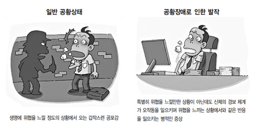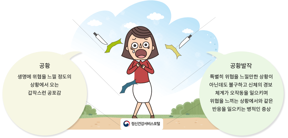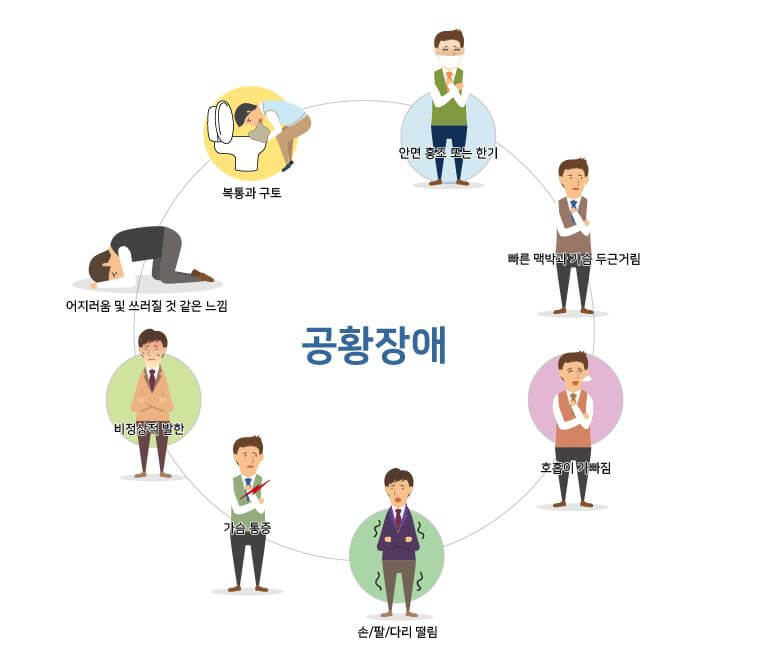 공황장애는 특별한 이유 없이 예상치 못하게 나타나는 극단적인 불안 증상을 유발하는 질병입니다. 극도의 공포심이 느끼게 되면서 심장이 터지도록 빨리 뛰거나 가슴이 답답하고 숨이차며 땀이나는 등 인체 증상이 동반된 죽음에 이를 것 같은 극도의 불안 증상이 있다고 하며 가장 극심한 경우에는 공포와 불안감으로 인해서 일상생활을 수행하지 할만큼 악화된다고 해요. 이러한 증상이 발생하면 보통 ‘공황성 장애’ 또는 ‘공황발작’이라고 지칭하기도 해요.