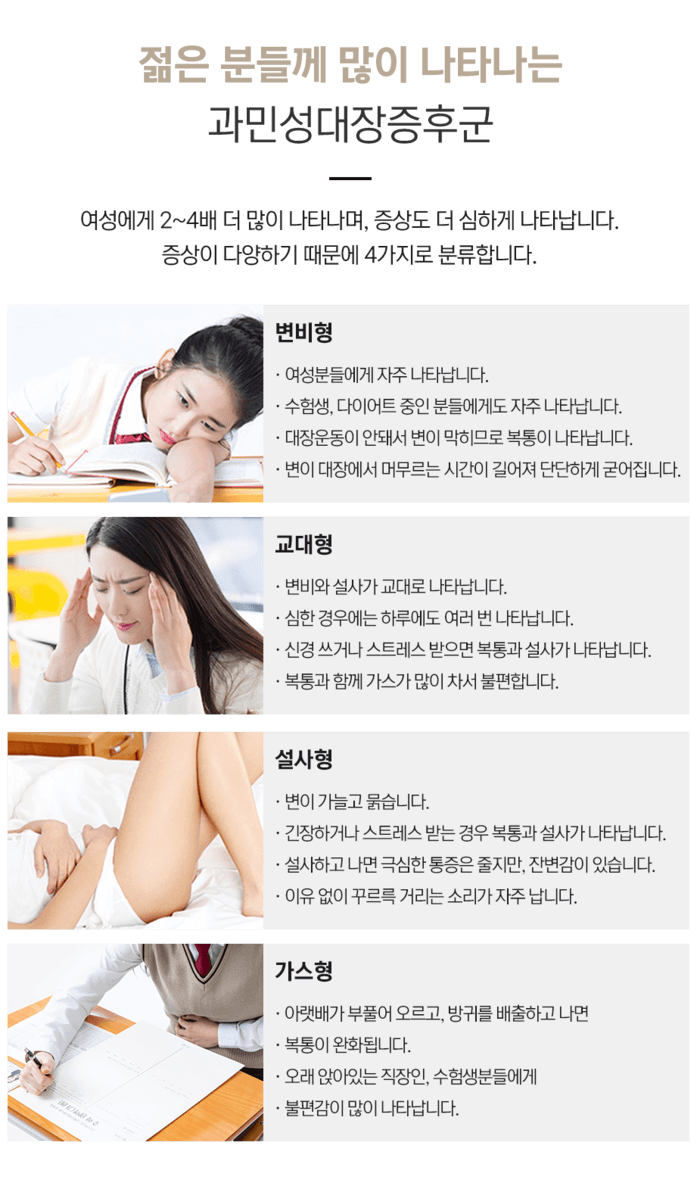 간혹 직장암 혹은 궤양성 대장염과 같은 질환이 과민성 대장증후군과 비슷한 증세를 보일 수 있지만, 과민성 대장증후군으로 출혈이 생기는 경우가 있어요.