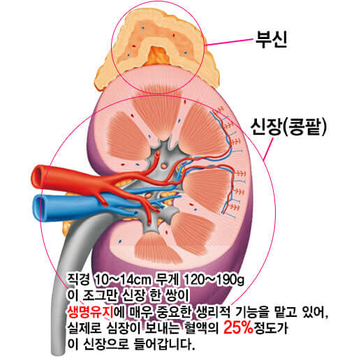 신장의 기능은 체내의 노폐물을 걸러내어 소변으로 바꿔주어 주어 몸 밖으로 배출시키는 역할을 합니다. 평균적으로 하루 180리터의 혈액을 걸러내는 역할을 합니다. 신장은 식사를 통해 들어온 노폐물 및 혈액 안에 들어있는 노폐물과 독소를 걸러주어 소변으로 배출할 수 있게 해 주는 역할을 합니다. 우리의 몸이 일정 농도 이상 산성 및 염기성으로 바뀌지 않도록 중성을 유지하게 돕고 ph균형을 잡아주는 기능도 합니다. 신장(콩팥) 역할에 병변이 생기면 우리 몸의 노폐물이 배출되지 못해서 쌓이게 돼요. 이렇게 되면 여러가지 질환이 발생되어요. 신장(콩팥)은 서서히 망가지기 때문에 관리가 필요합니다. 이번 포스팅에서는 신장이 안좋으면 나타나는 증상에 연관하여 알아보았어요.