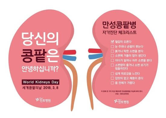 우리 신체에서 신장의 역할은 필요 없는 물질을 걸러 소변으로 배출하고 우리 신체에 필요한 물질만 재흡수하는 역할을 하고 있답니다. 그런데 신체에 필요한 성분인 단백질과 혈액이 소변으로 나오거나 혈액 속 노폐물이 쌓이면 신장 질환이 발생해요. 오늘은 신장이 안좋으면 나타나는 증상에 관해 알아보는 시간을 가지겠습니다.