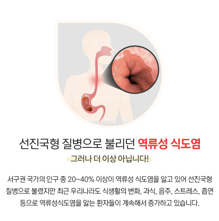 역류성 식도염은 불규칙한 식습관과 스트레스로 인해 생기게 될 수 있어요. 그리고 식품물을 올바르게 씹지 않고 삼키거나 식사 직후 바로 눕거나 했을 때 위산의 역류 현상이 생길 수 있어요. 반복적으로 위산의 역류 현상이 발생하게 되면 그것이 점차적으로 역류성 식도염으로 발연될 수 있어요. 또한 급작스럽게 불어난 체중 변화와 비만인 경우 복부 압력이 증가하여 역류성 식도염이 발생할 확률이 높아요. 기타 이유가 되는 것으로는 임신으로 인해서 복부의 압력이 증가하게 될 때, 그리고 흡연, 간접흡연 역시 이러한 질병의 이유가 되는 것이 되기도 해요. 진정제, 항히스타민제, 항우울제, 천식 약물의 일부 등의 약물 복용 역시 역류성 식도염의 이유가 되는 것이 될 수 있답니다.