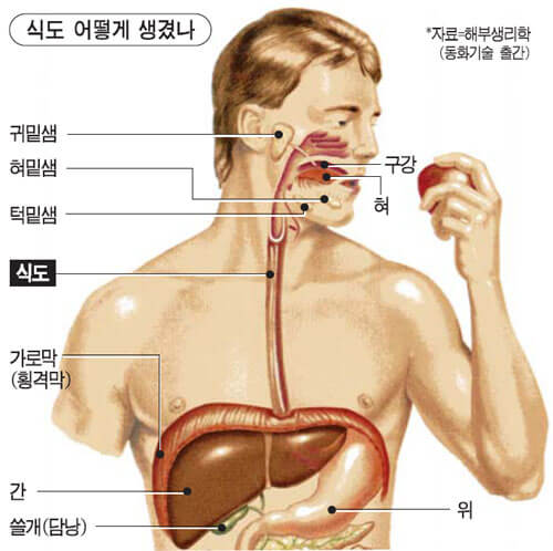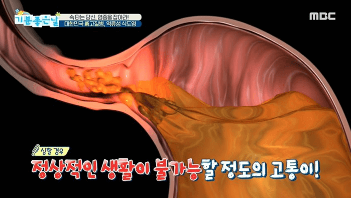 가장 흔한 증상으로써 식품을 삼킬 때 뭔가 긁히는 듯 한 느낌이 들 수 있다고 합니다. 이런 경우, 신 식품이나 매운 식품은 가장 큰 문제를 나타나게 할 수 있다고 합니다.