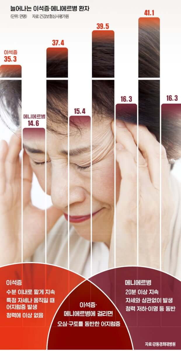 어지럼증은 "코끼리 코 돌기" 와 비슷한 느낌이라고 생각을 하게되면 되어요. 머리를 움직이거나 아침에 잠자리에 서 일어나거나 돌아누울 때, 혹은 평소 하늘을 바로보거나 좌우로 머리를 돌릴 때 어지럼증이 발생이 되어요. 그와 같이 구역질, 구토, 식은 땀등 정도에 따라 같이 동반이 될 수가 있겠습니다.