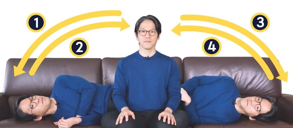 고개를 앞으로 숙이고 2분간 지속해 줍니다. 이 때에 올바른 자세를 보존하고 목에 통증이 없을 만큼만 내려주는게 중요합니다. 이렇게 2분이 지난 뒤 고개를 할 수 있는 빠르게 올려 청장을 응시해줍니다. 여기서 천장이 빙글빙글 도는 증상이 있거나 10초 이상 유지되어요. 하게되면 이석증을 의심해볼 필요가 있다고 합니다. 또 이 테스트는 한번 하고 끝나는게 아닌 일주일에 2회 진행해 3주 동안 진행에 어지러운 증상이 지속 적으로 나타나는 것을 확인하는게 중요합니다. 이석을 제 위치로 돌리는데 도움이 되기에 아침 혹은 저녁 시간에 10회 정도 반복하게되면 효과가 있어요.